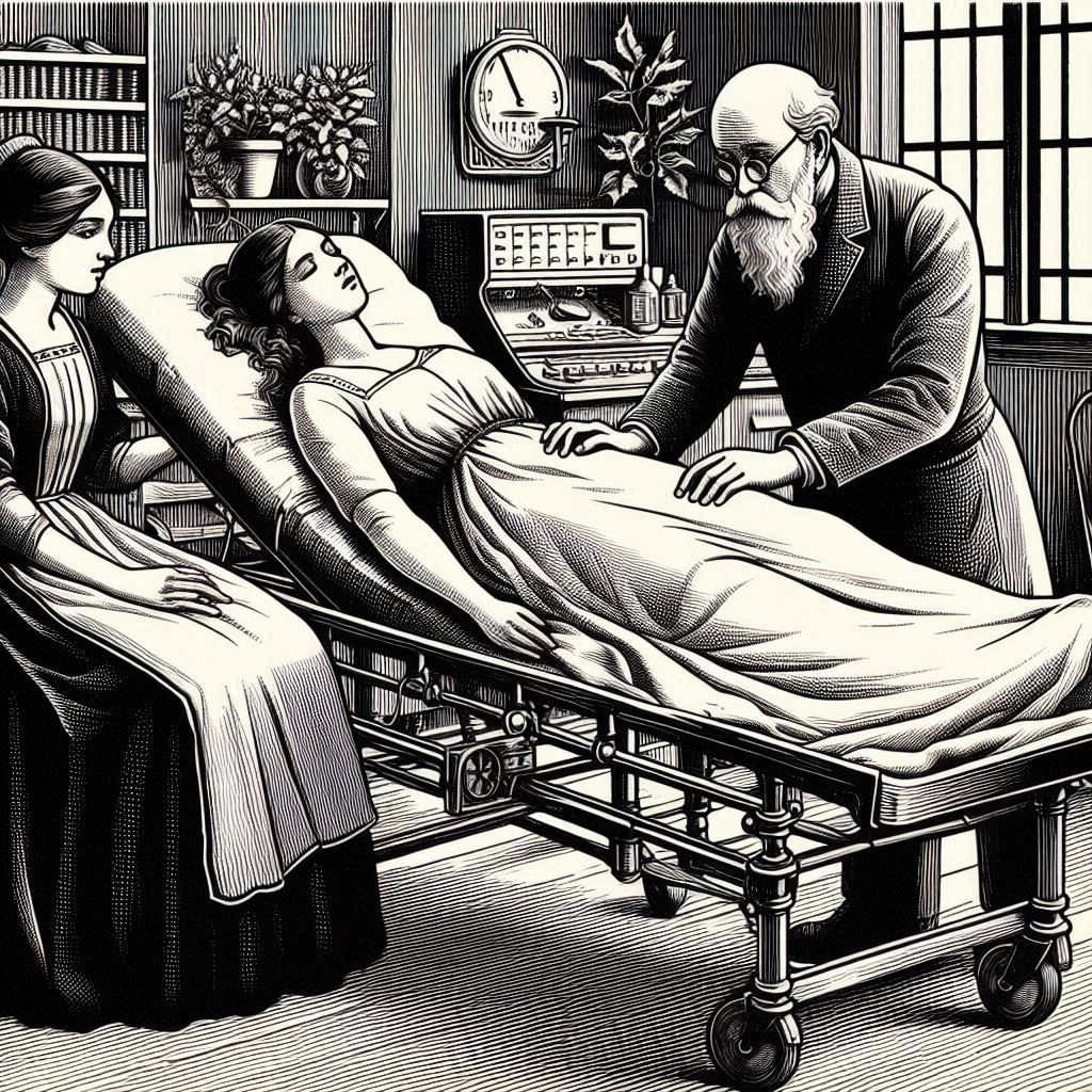 Levantou-se novamente, arrastando a sua cadeira para perto da maca onde estava a paciente. A acompanhante já com um certo ceticismo aproximou-se do doutor para escutar os resultados de suas observações. Mantendo o seu ar sereno, o médico disse: